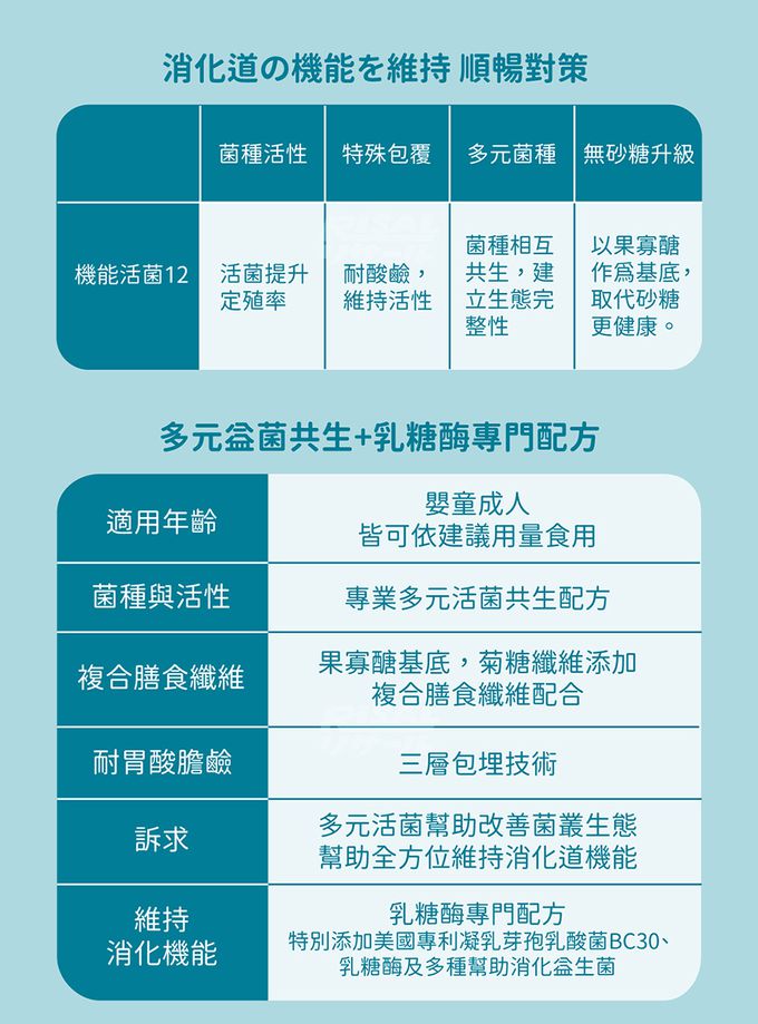 12種多元活菌,建構消化道完整性