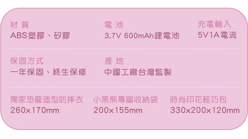 忙碌時有帽T熊陪孩子放電玩耍,出門讓帽Q小黑熊隨行解悶,睡覺前聽著故事及音樂走入甜美夢鄉