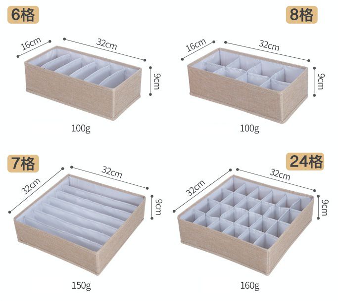 布藝衣服分隔收納盒-灰色/卡其/墨綠色/橘粉色 (8格)
