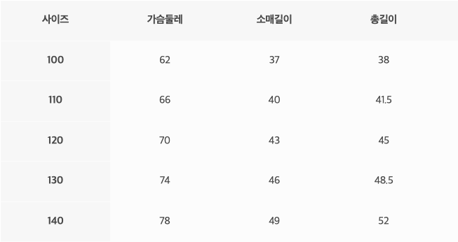 韓文由左至右為:尺寸、胸圍、袖長、總長