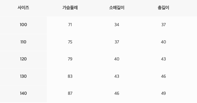 韓文由左至右為:尺寸、胸圍、袖長、總長