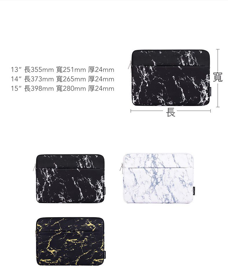 質感大理石紋路的設計,讓這款筆電包更耐看~正面還有隔層的設計,能分別收納滑鼠、充電線、筆記本、手機等物品,隨手好拿又收納