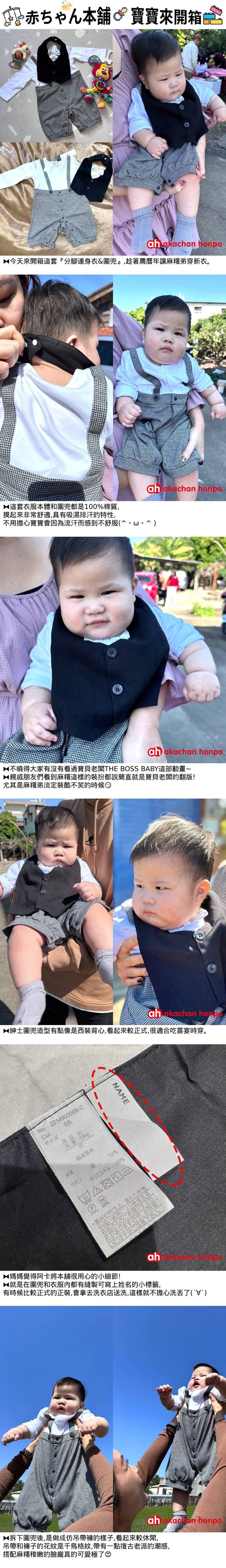 材質:【分腳連身衣】本體-棉100%/羅紋部分-棉95%聚胺基甲酸酯5%【圍兜】格紋部分-聚酯纖維65%嫘縈35%/素面部分-棉100%/蝴蝶結-聚酯纖維100%