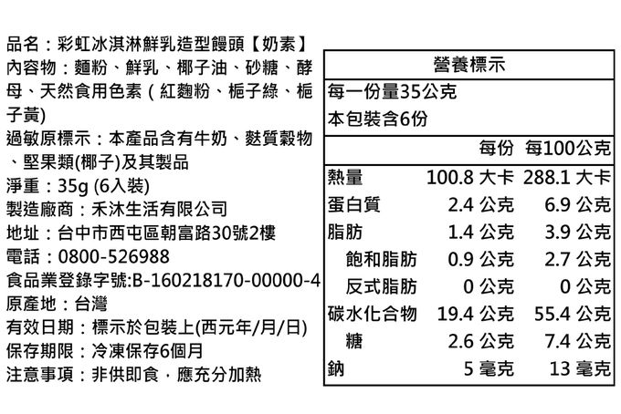 品名:彩虹冰淇淋鮮乳造型饅頭