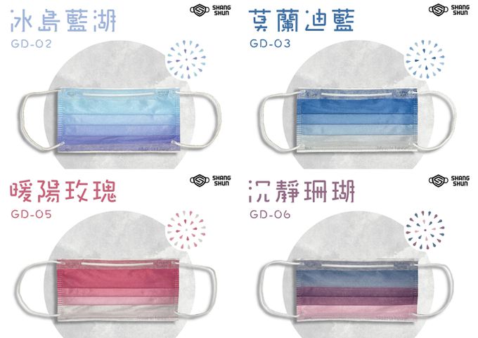 上順醫材 SHANG SHUN - 漸層系列成人三層醫療級/MD雙鋼印/台灣製平面口罩-漸層系列-冰島藍湖 (17.5*9.5cm (±0.5))-50入/盒(未滅菌)