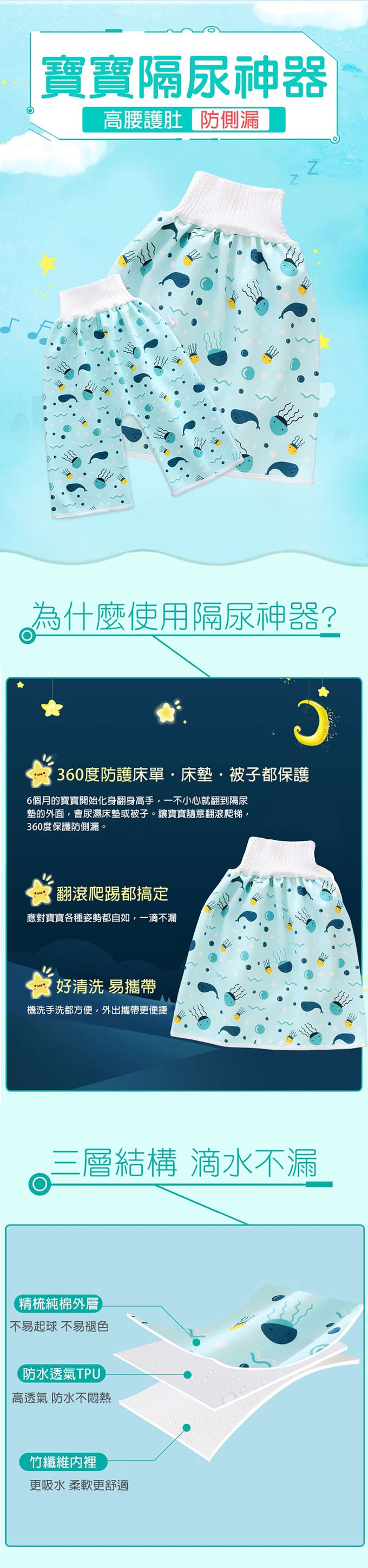 【商品材質】表層-精梳純棉層、夾層-TPU防水層、內層-竹纖維
