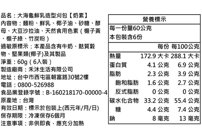 成分:麵粉、鮮乳、椰子油、砂糖、酵母、天然食用色素(紅麴、梔子綠、竹炭粉)