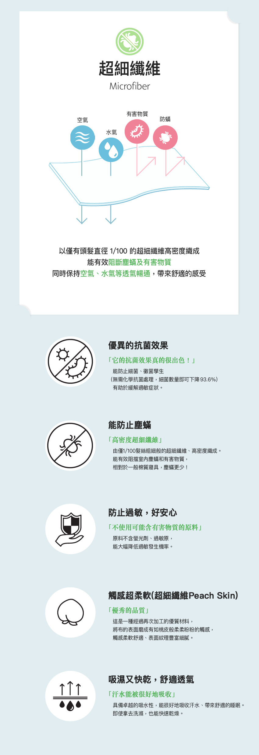 填充內裡也都是超細纖維,從裡到外全方位抗菌防蟎!