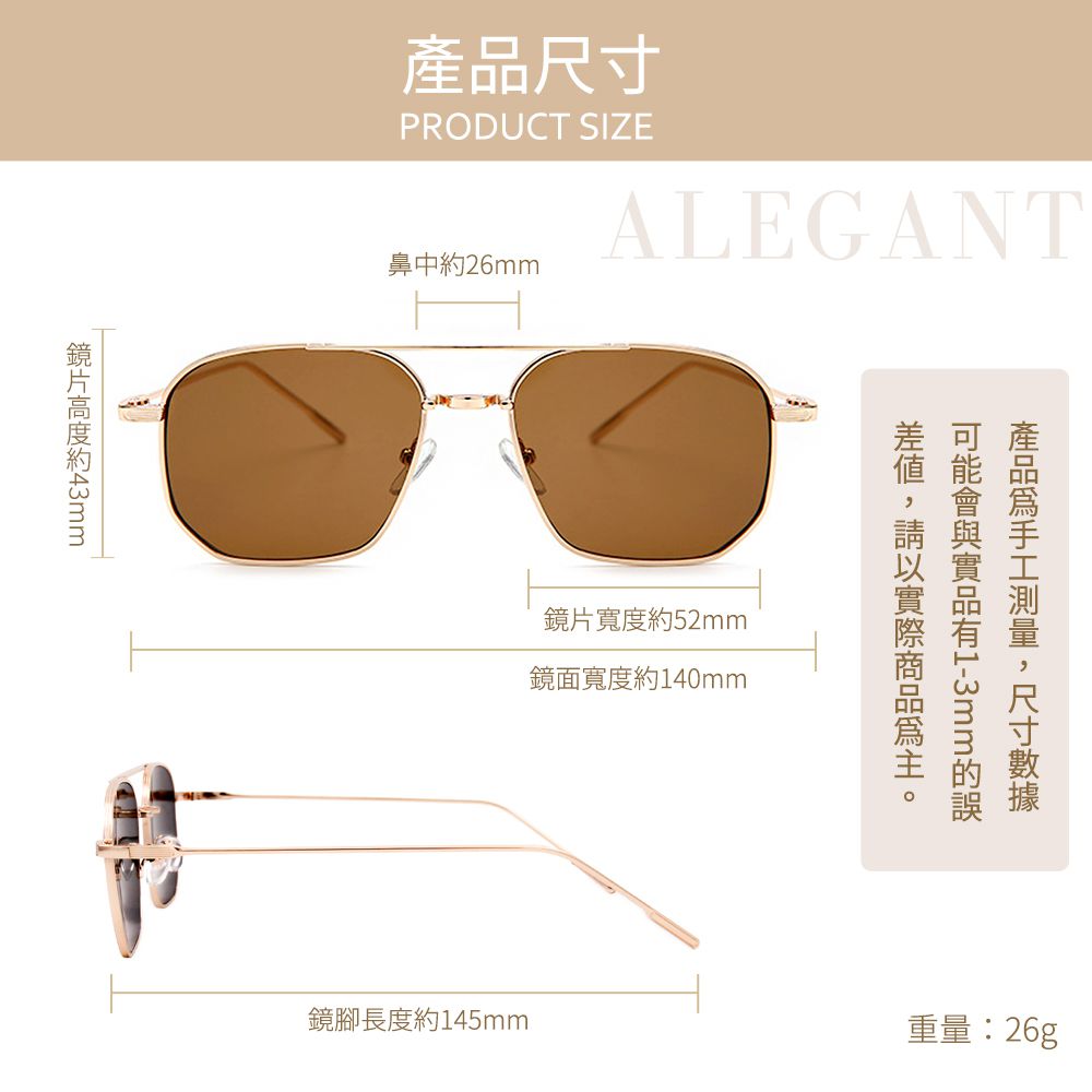 • 經典復古飛官雙樑造型設計,潤飾臉型的弧度