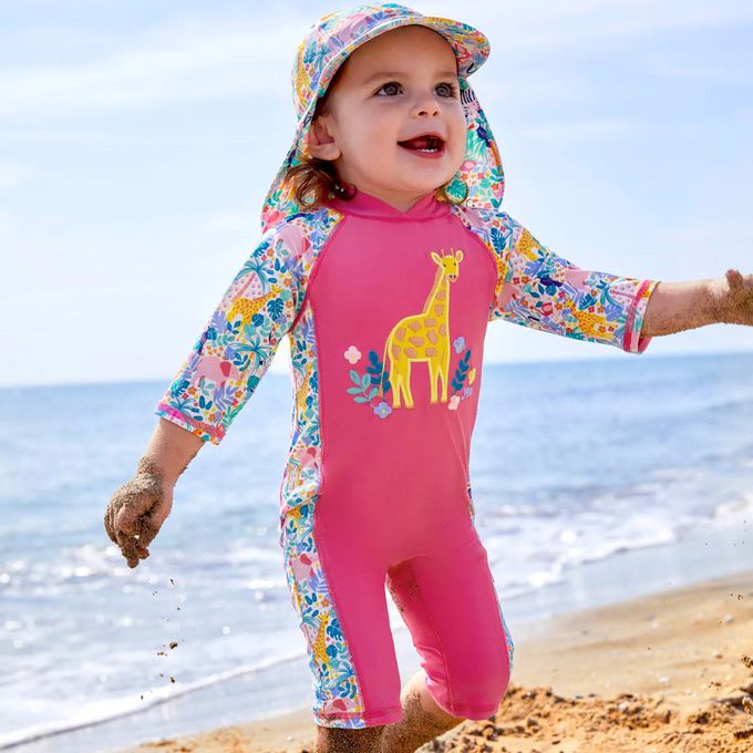 ※ 連身式能避免海水將衣服掀起,遮住寶寶的臉