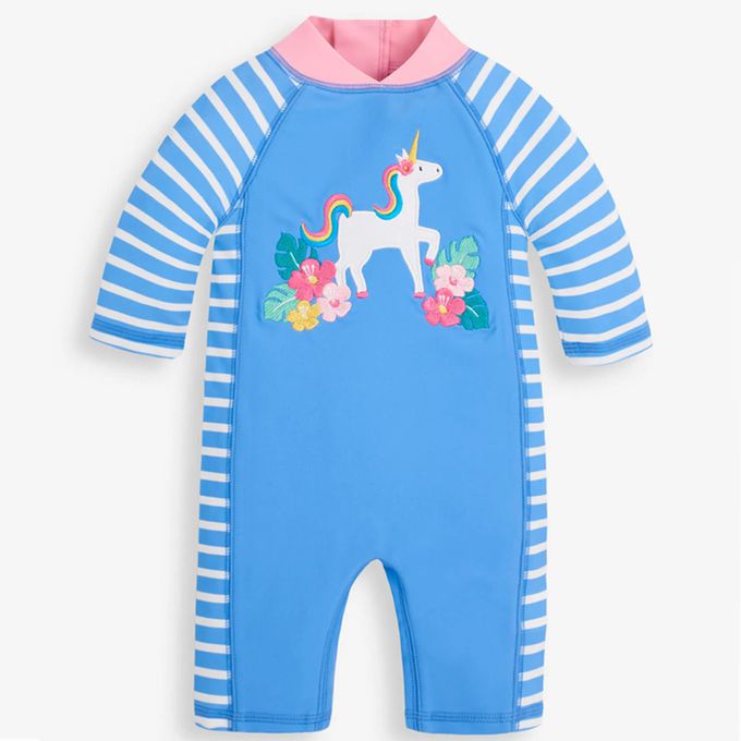 ※ 連身式能避免海水將衣服掀起,遮住寶寶的臉