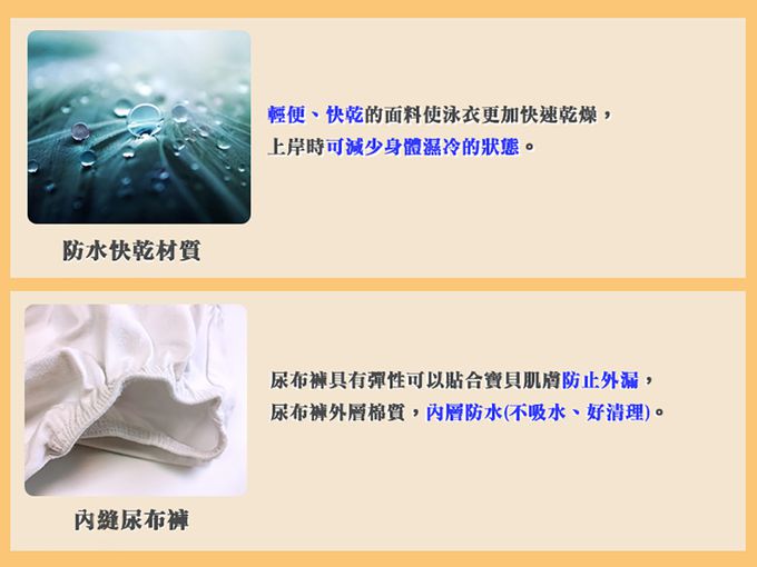 ※ 內縫有尿布褲,小孩可安心下水,也符合泳池規範