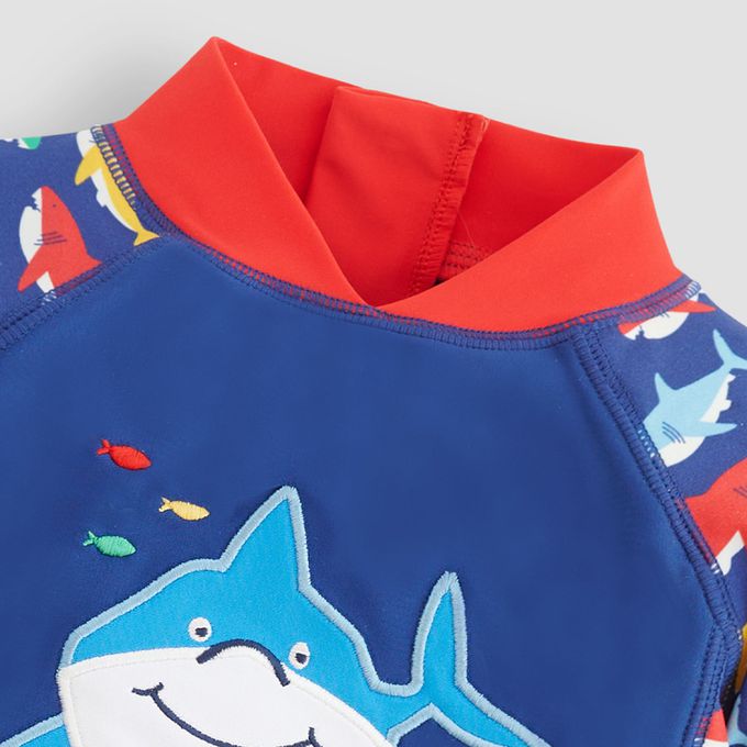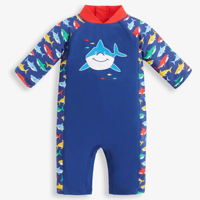 ※ 連身式能避免海水將衣服掀起,遮住寶寶的臉