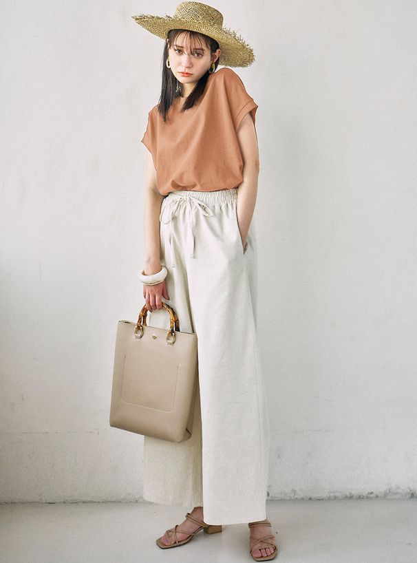 ![日本 GRL - 優雅抓皺泡泡布吊帶裙-米杏]()