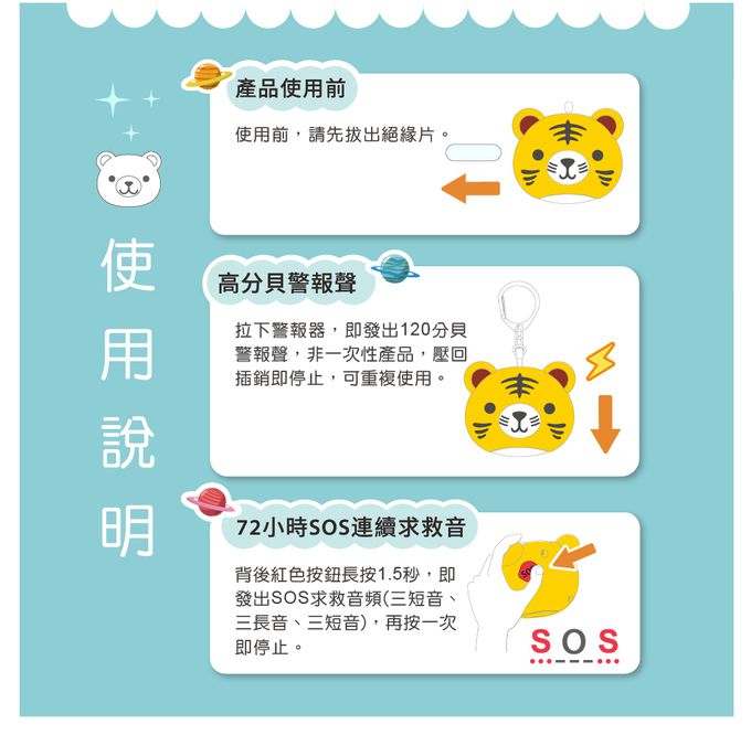 BUZZER B 隨身警報器-多功能兒童女子防身防狼警報器(120超高分貝)-小藍熊-地震求救神器