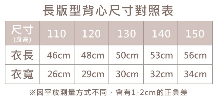 因每人身型不同,身高僅供參考,請以「平量尺寸」為選購標準