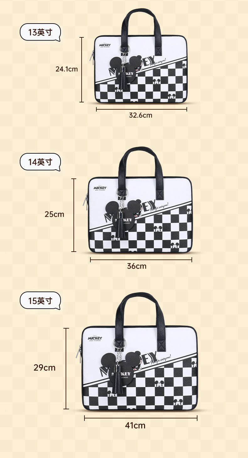 迪士尼手提電腦包-格紋+米奇-黑+白