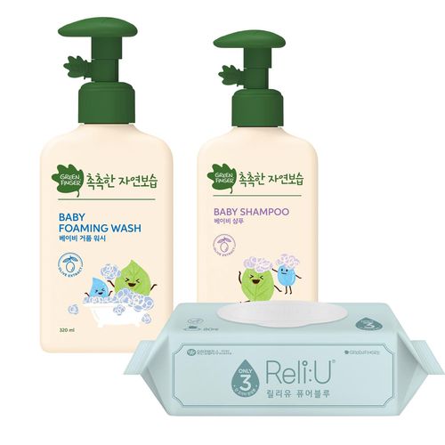 Green Finger - Green Finger - 綠手指 CHOKCHOK三效保濕嬰幼兒系列-泡泡洗髮組-泡泡慕斯沐浴乳320ml/洗髮乳320ml/加贈 ReliU潔淨藍純水濕紙巾-80抽*1