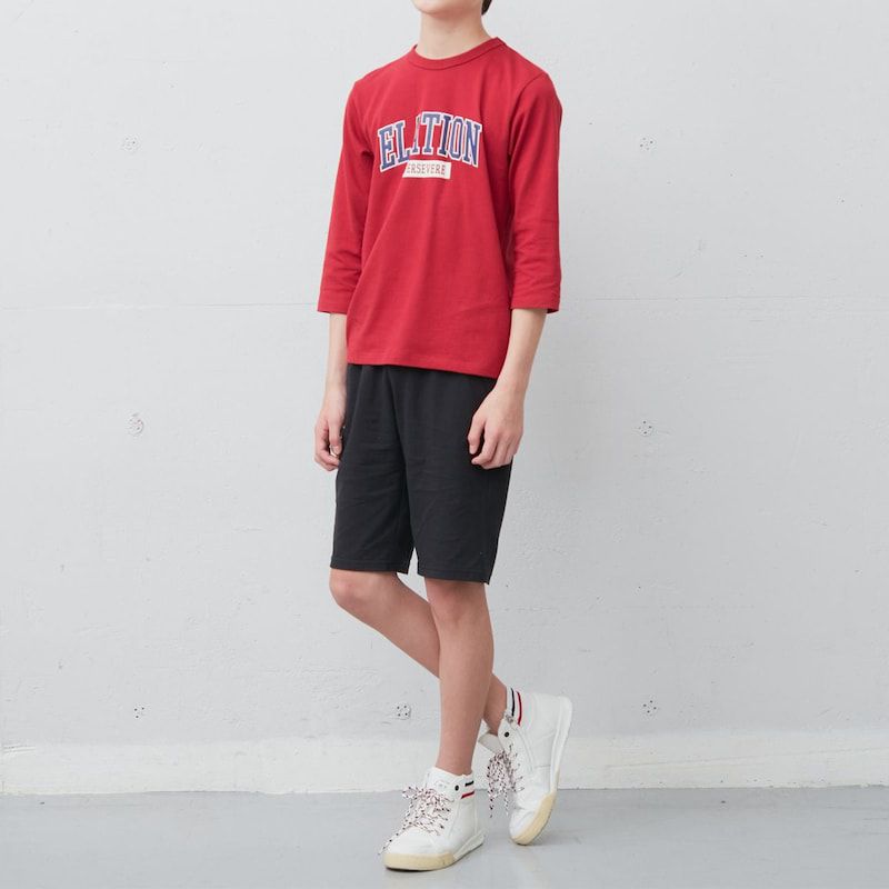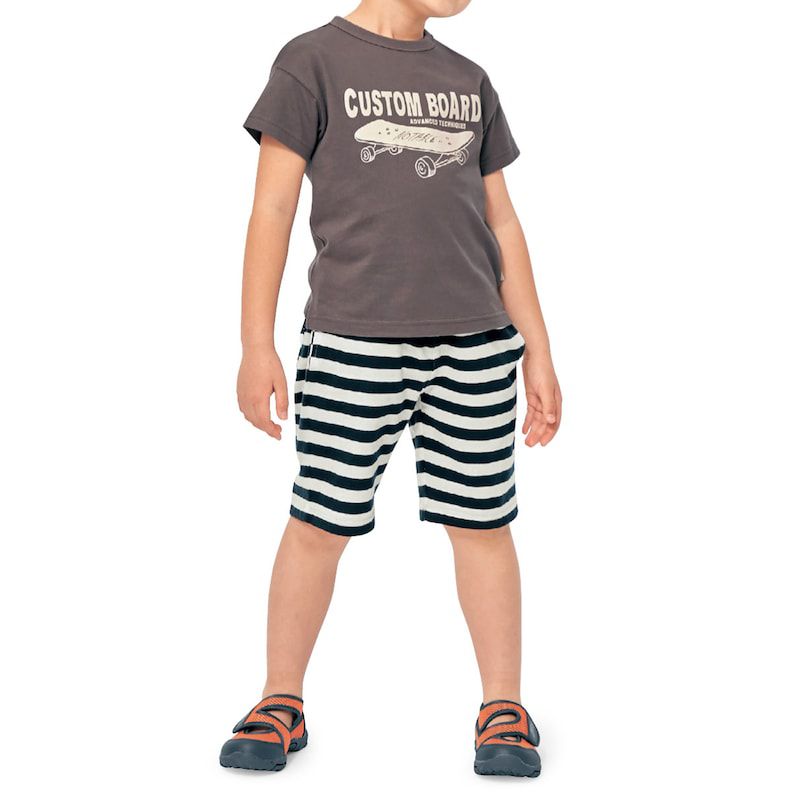 在領口處使用羅紋伸縮領口,有伸縮性也方便孩子穿脫