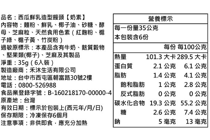 ⚜️商品介紹:✅100%鮮乳✅無蛋✅低糖✅低油 西瓜鮮乳造型饅頭,採用SQF-Level 3最高等級驗證麵粉製作不包內餡,梔子調色,香甜可口,營養又健康。