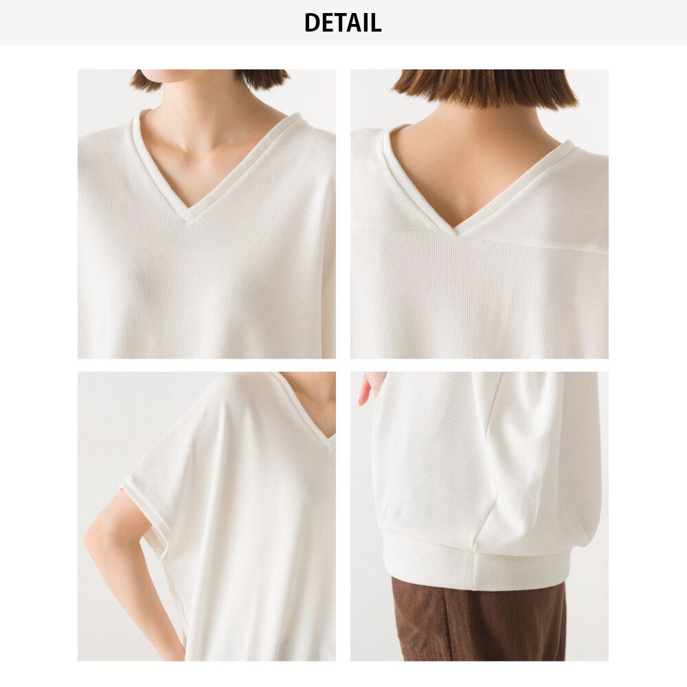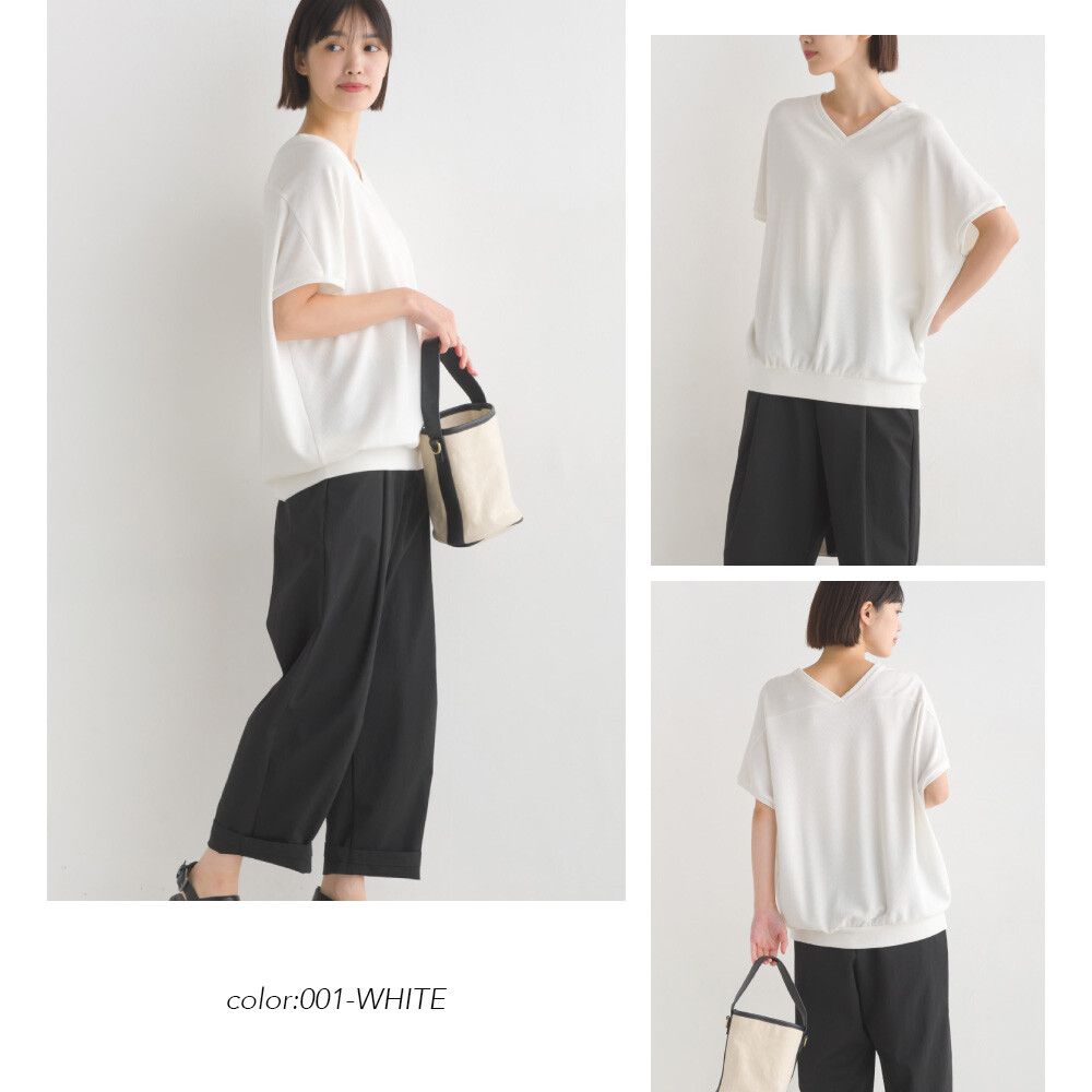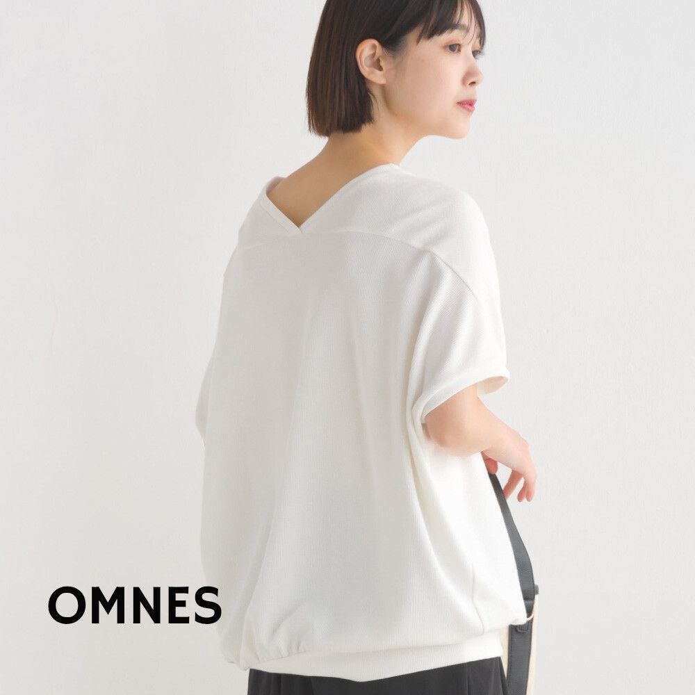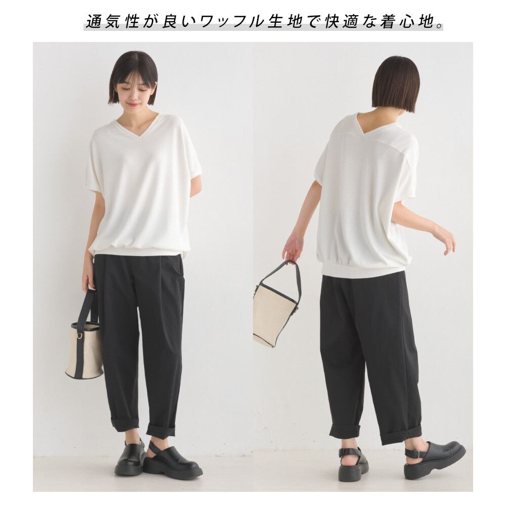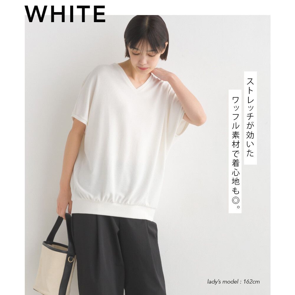 日本 OMNES - 華夫格前後V領落肩短袖上衣-白