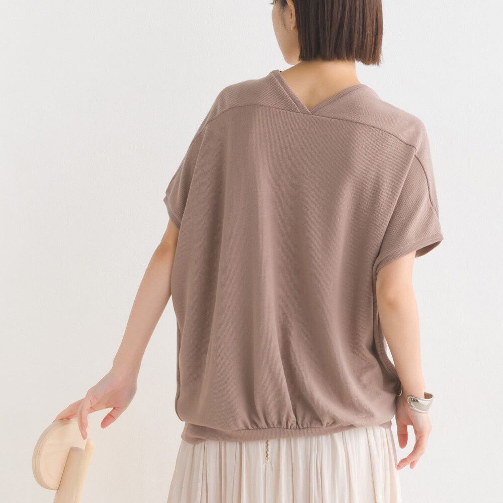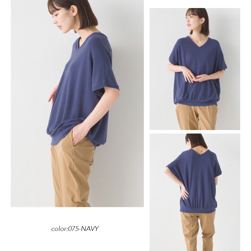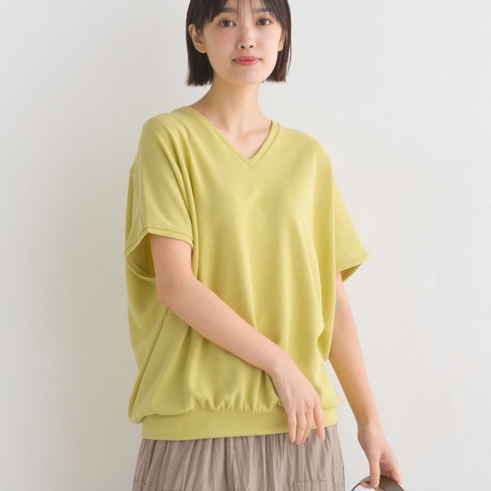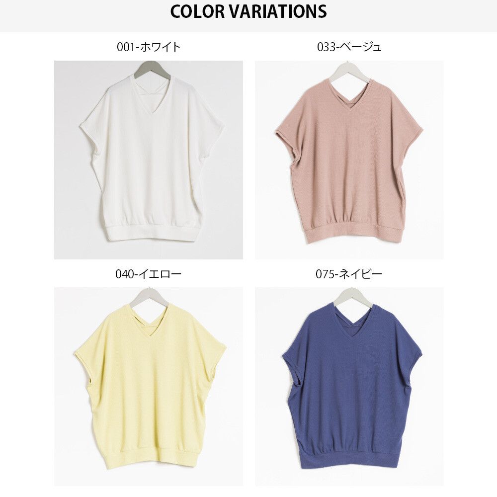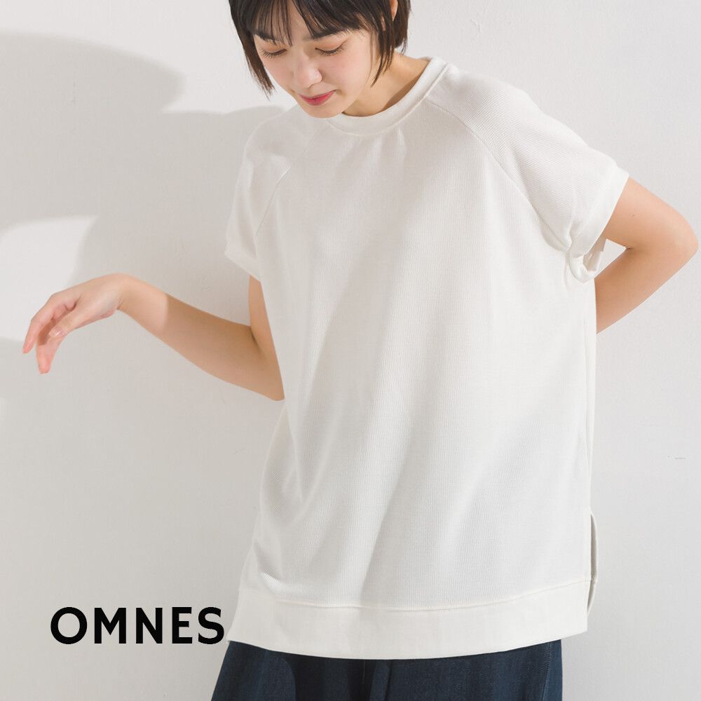日本 OMNES - 華夫格前後V領落肩短袖上衣-白