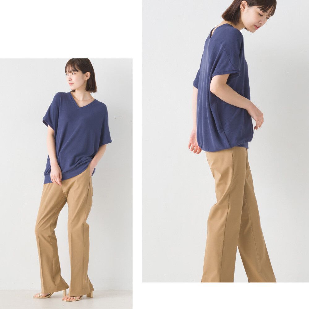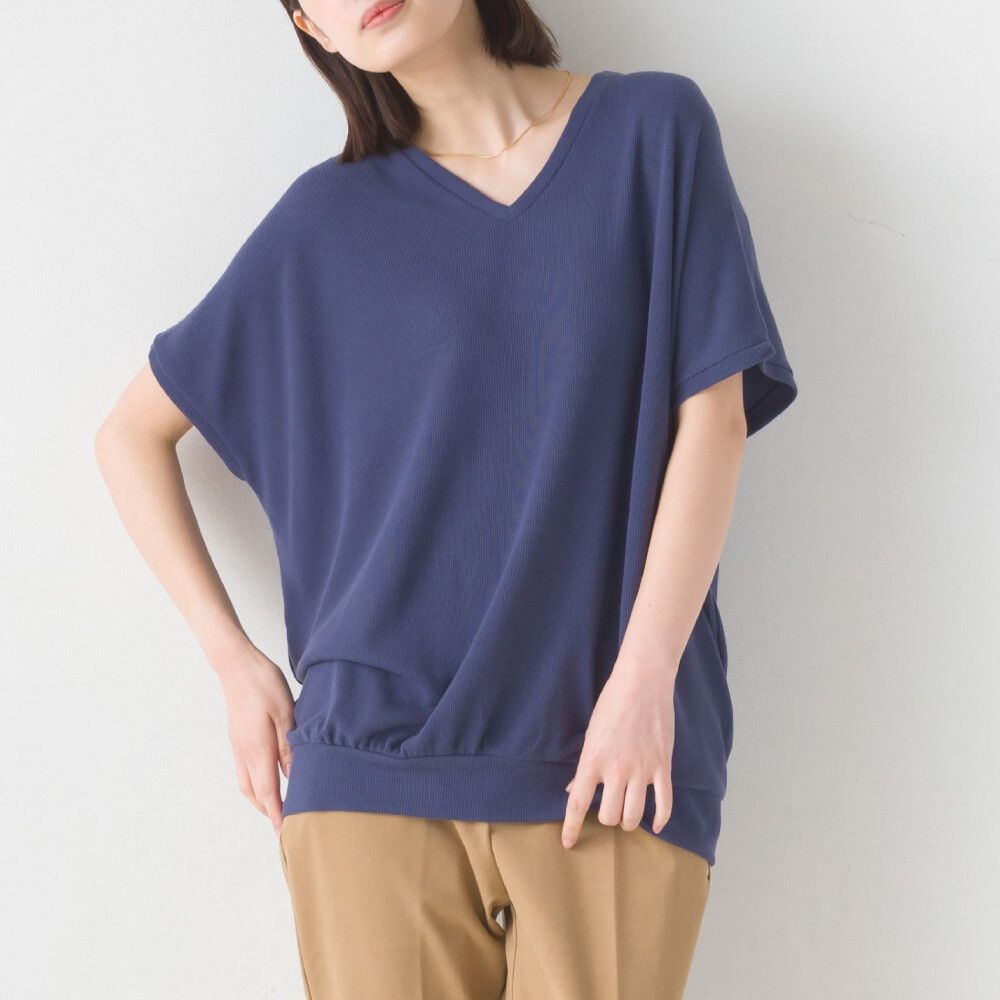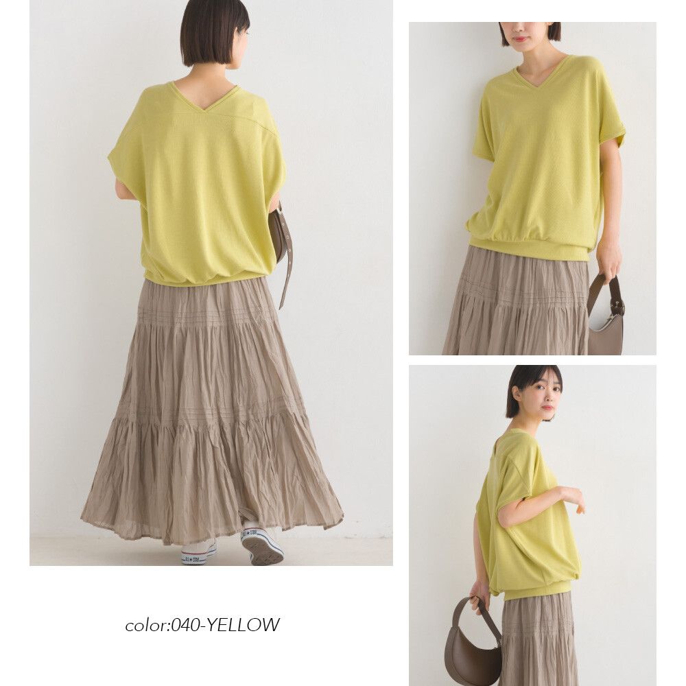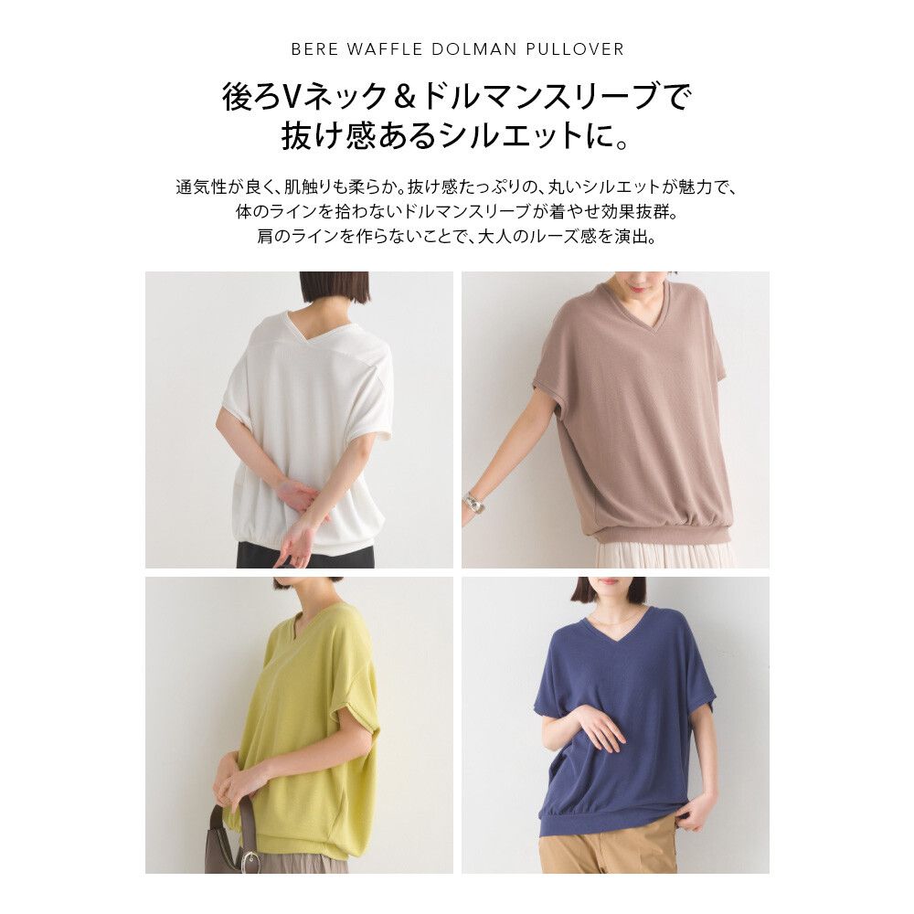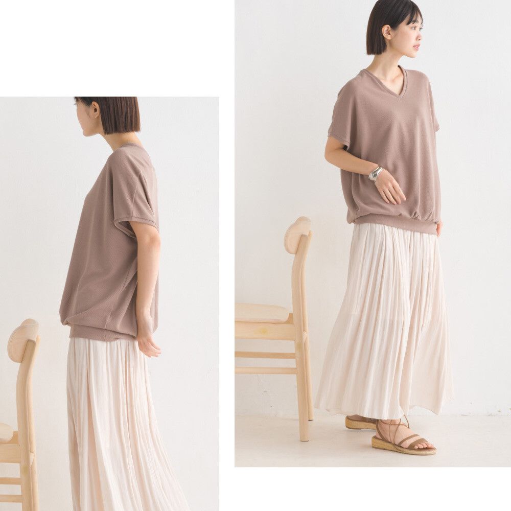 日本 OMNES - 華夫格前後V領落肩短袖上衣-白