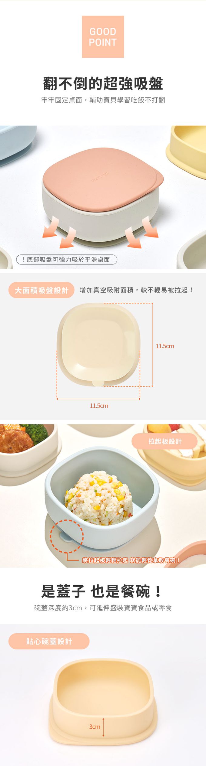 超強吸力!結合碗蓋完美分食