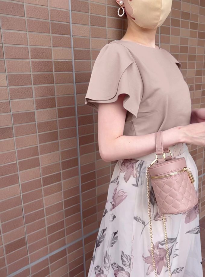 日本 GRL - 顯瘦雪紡圓領花苞短袖上衣-粉紅