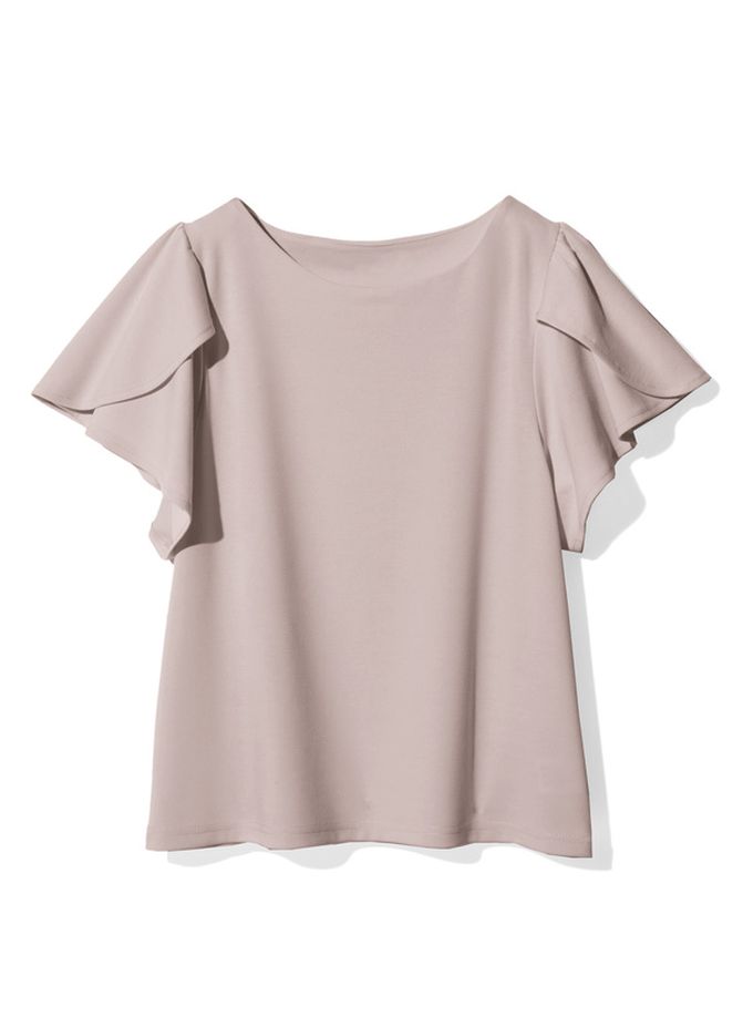 日本 GRL - 顯瘦雪紡圓領花苞短袖上衣-米杏
