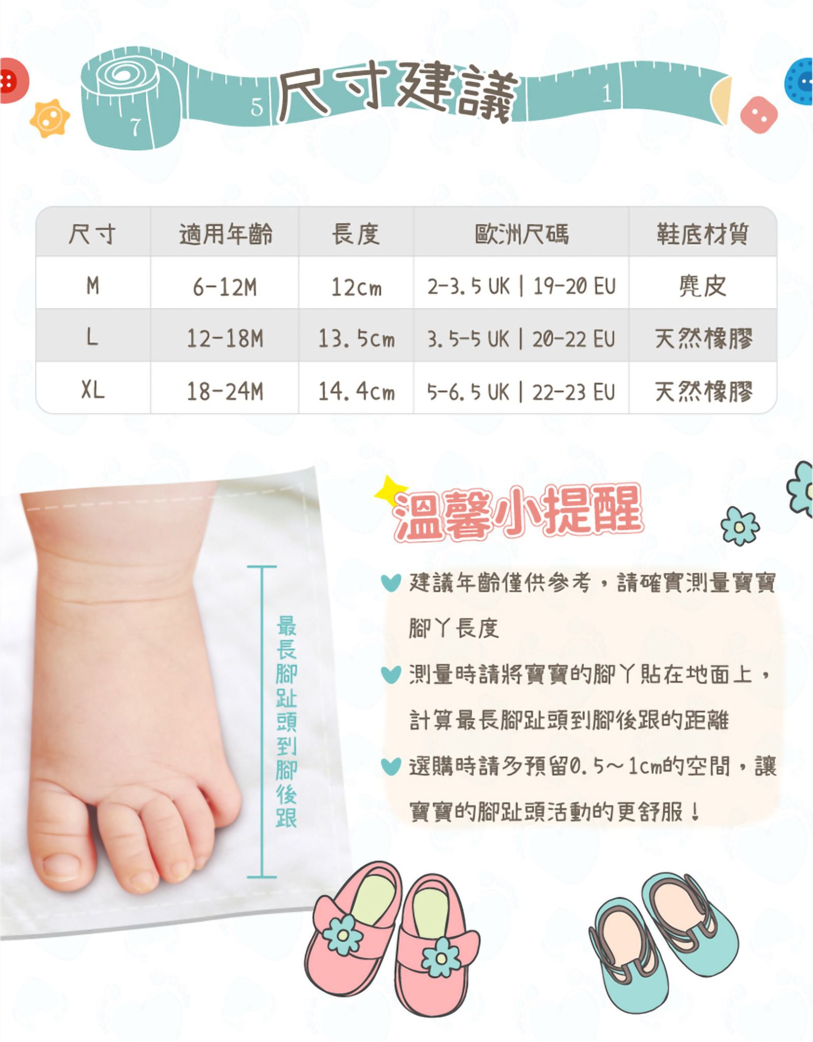6-12M麂皮/M、12-18M膠底/L、18-24M膠底/XL