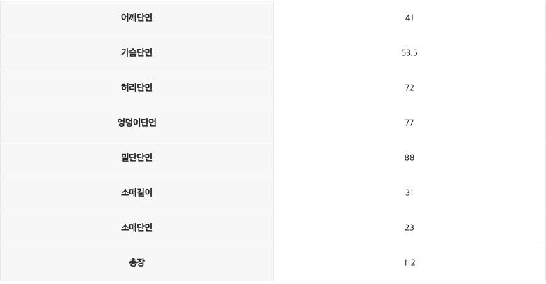 尺寸表由上而下為:肩寬、胸寬、腰寬、臀寬、下擺寬、袖長、袖口寬、總長