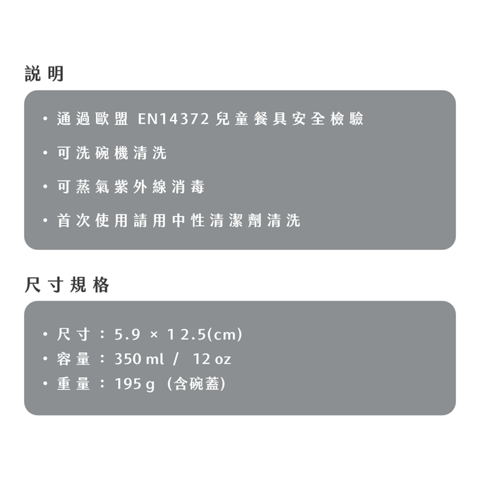 大容量,餵食時好拿取,吸盤效果還在測試,不確定是寶寶比較暴力會把他拆開,還是媽媽沒有吸好,有時候會被寶寶拿起來,整體而言很不錯