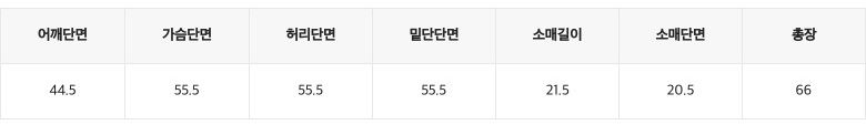 尺寸表由左而右為:肩寬、胸寬、腰寬、下擺寬、袖長、袖口寬、總長