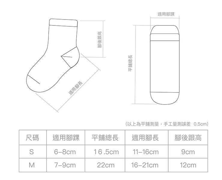• 尺寸:S (腳長11-16cm)、M (腳長16-21cm)