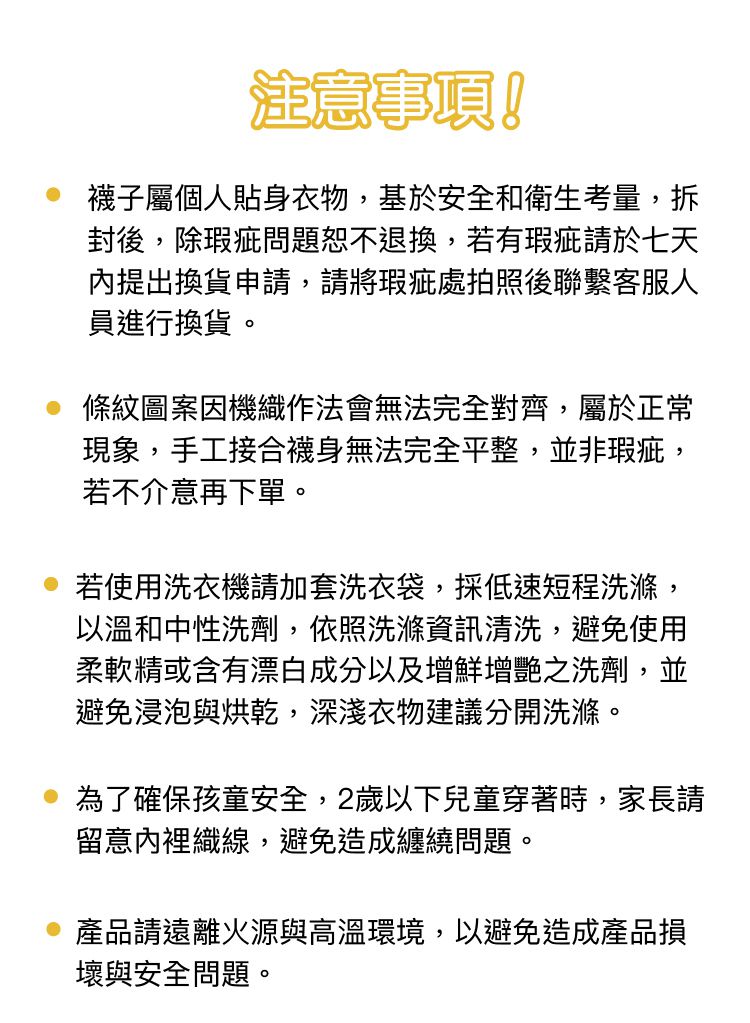 - 提醒媽咪七天猶豫期並非七天試用期喔~ 媽咪如欲退換貨,所退回的商品必須是全新的狀態、並且完整包裝。