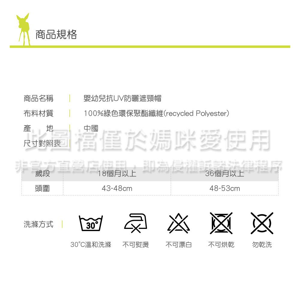後頸部遮陽設計,保護寶寶耳朵及後頸,避免紫外線傷害