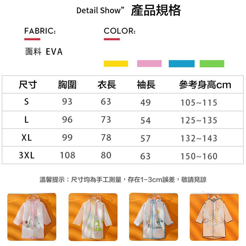還有最最重要的——加大書包位設計,不用擔心孩子書包背起來之後,雨衣空間不足,導致下半身淋濕,有一好沒兩好...這款雨衣都能顧及!