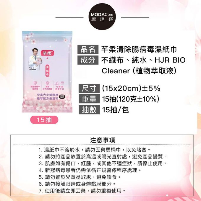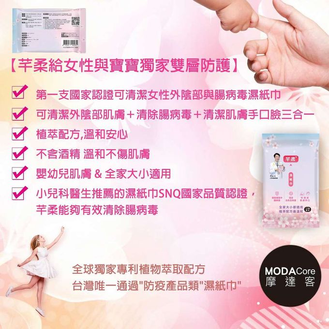 品名:芊柔PLUS清除腸病毒+抗白色念珠菌濕紙巾15抽*18入隨身包-女性私密處可用