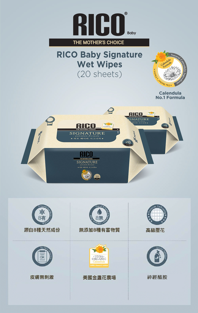韓國RICO baby - 金盞花有機天然特厚款濕紙巾Signature 70抽-(12+2包Signature有蓋20抽紙巾 組/箱)
