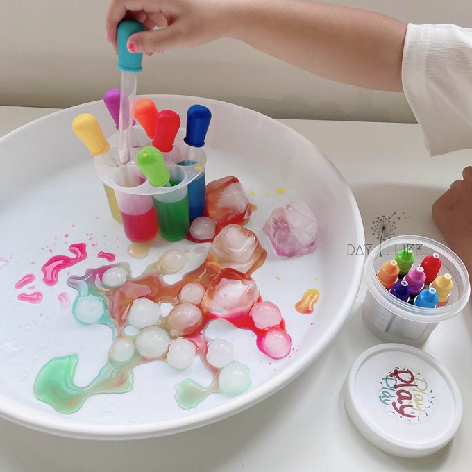 顏色配對很好玩,多重玩法,還可以幫冰塊上顏色,還可以用紗布巾,彷彿一幅畫