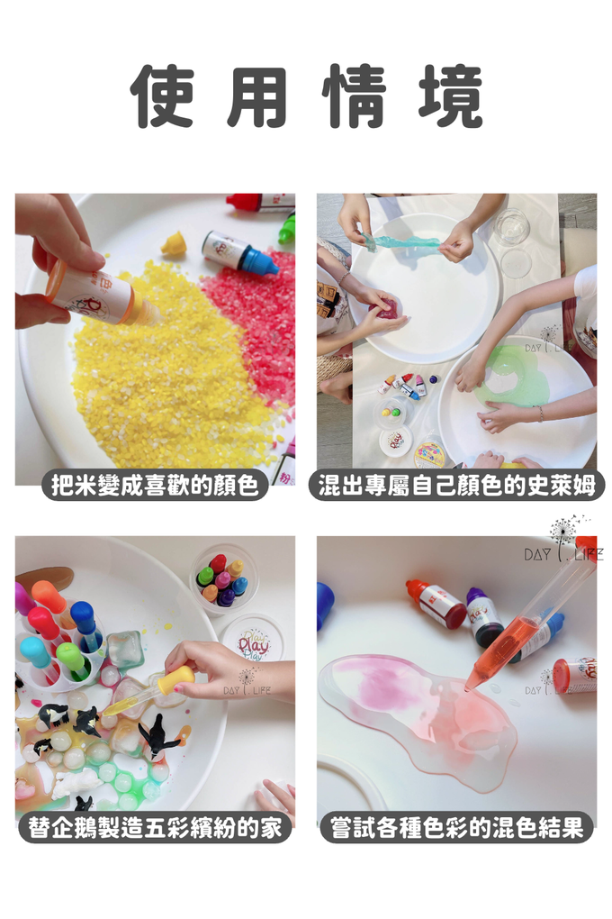 顏料顯色度非常好!加幾滴顏色就很顯色,非常省用量,像滴眼藥水一樣很好控制使用量不怕加太多