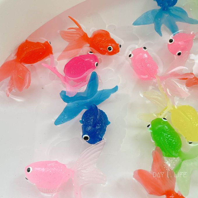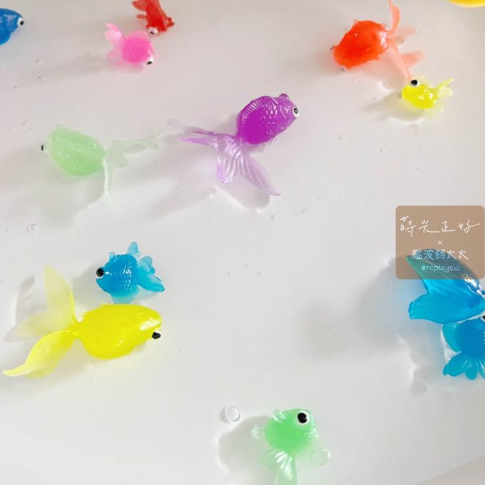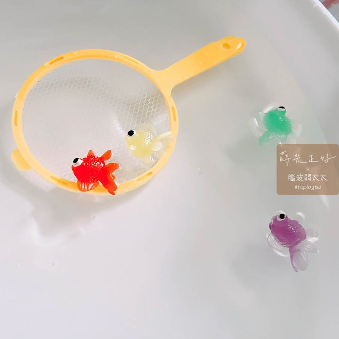 小魚很精緻可愛,用來撈魚很適合,也可以認識顏色,摸起來很滑溜。