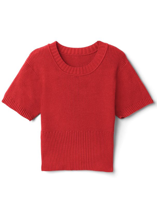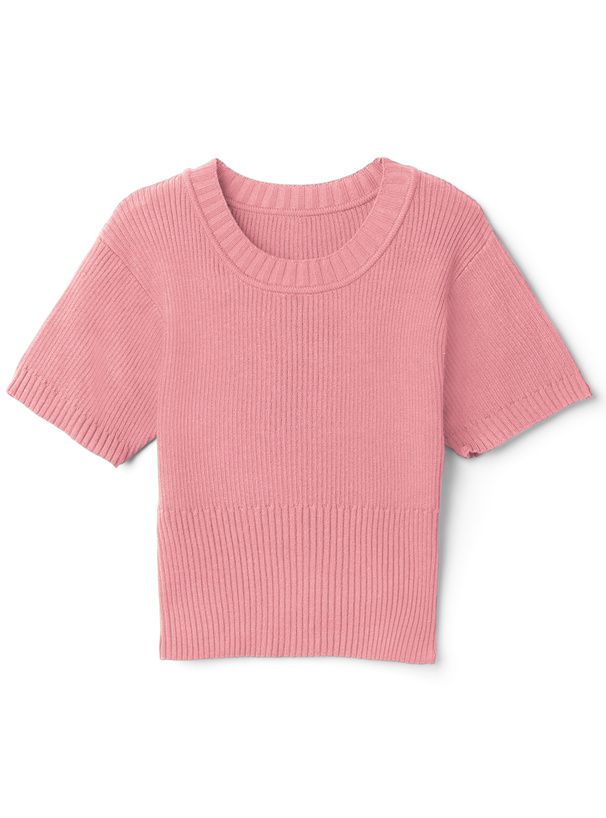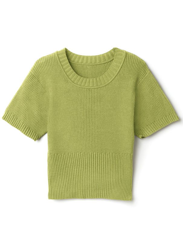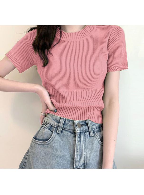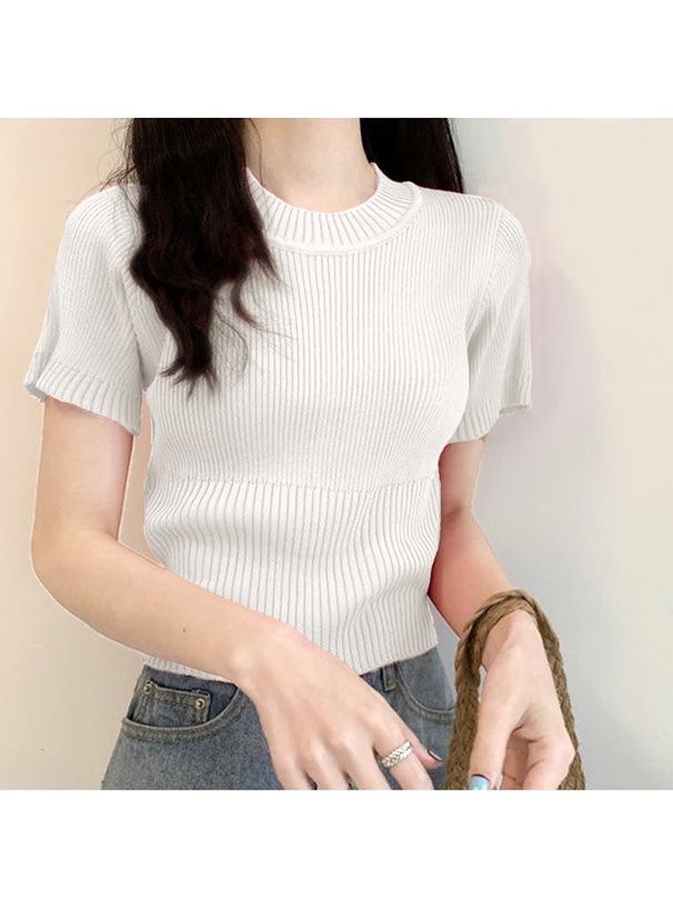圓領顯瘦羅紋短袖上衣
