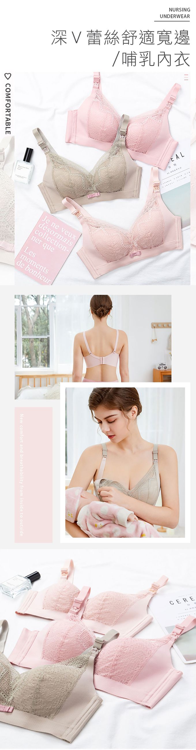 品名:深V蕾絲哺乳內衣 寬邊集中無鋼圈 上開扣