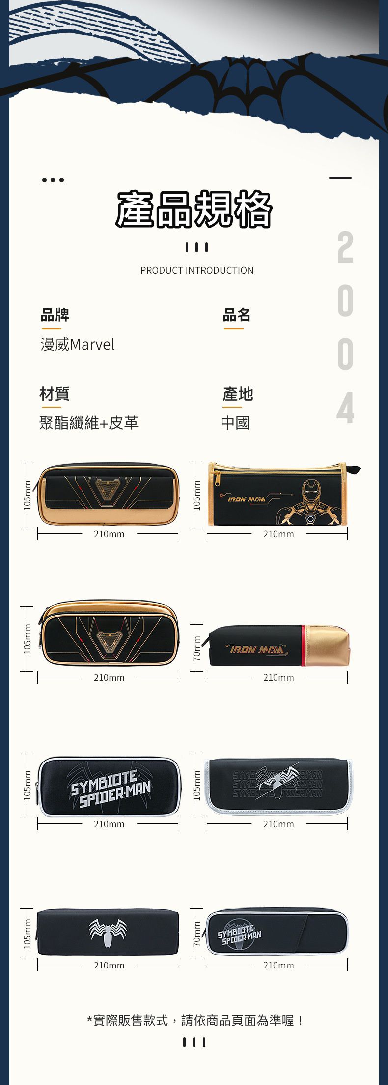 卡通簡約大容量鉛筆袋-鋼鐵人-金+黑 (23x10.5cm)