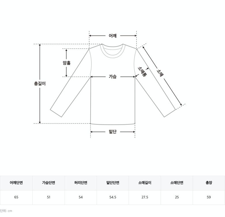 尺寸表由左至右為:肩寬、胸寬、腰寬、臀寬、下擺寬、袖長、袖口寬、總長