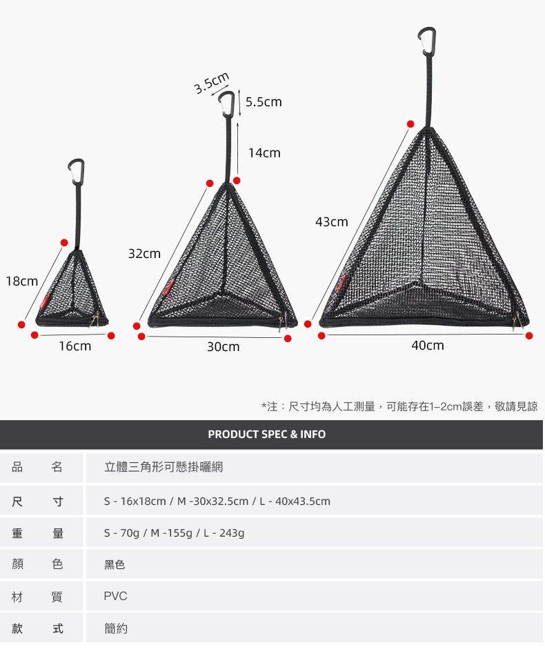 立體三角形可懸掛曬網-大號-黑色 (43x40cm)
