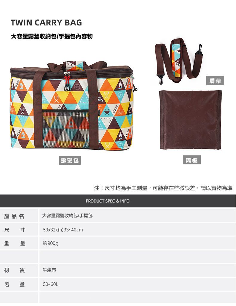 最基本的裝食材、餐具、卡式爐等配件少不了一咖提袋,這款大容量的收納包就能滿足一咖裝入,不擔心大包小包忘記帶~