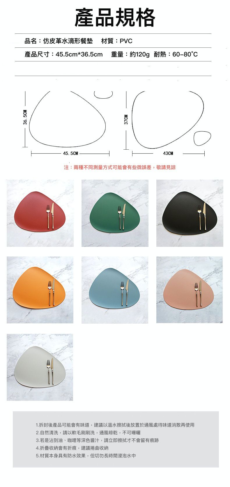 仿皮革水滴形餐墊-米灰色 (45.5cm*36.5cm)